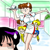 25・さぁ〜て、こお肉どう料理しようかなぁ〜 26・後ろのアルテミスはサOエさんのタマのマネ 27・私の美貌にメロメロよ〜ん♪ 28・砂漠にはるかさん、何ゆえ砂漠かは不明、、、 29・はるかさんの目のUP! 只それだけ 30・夕方のはるかさん、う〜ん、只それだけ、 31・自分のパワーでひっくり返るみちるさん、でも優雅にひっくり返る 32・なるちゃんの恋心、泣けちゃうシーンでした パフェ食べたい 33・ウワサのボインのウェイトレスさん、哀れ4人の餌食に、、、 |